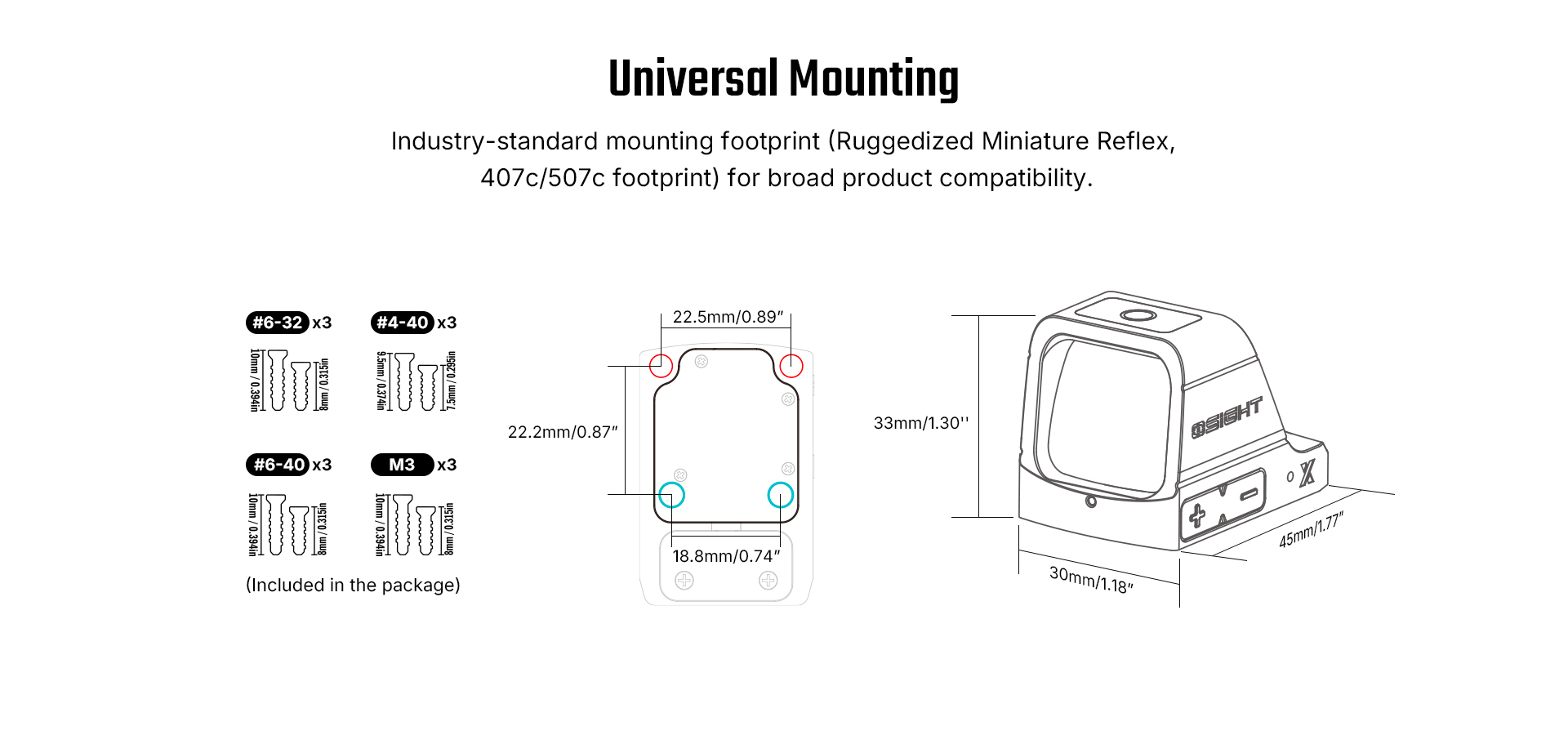 • Most Common Footprint: By adopting the industry-standard mounting footprint (Ruggedized Miniature Reflex, 407c/507c footprint) for optic cuts, the Osight X ensures versatility and ease of integration(use included screws).